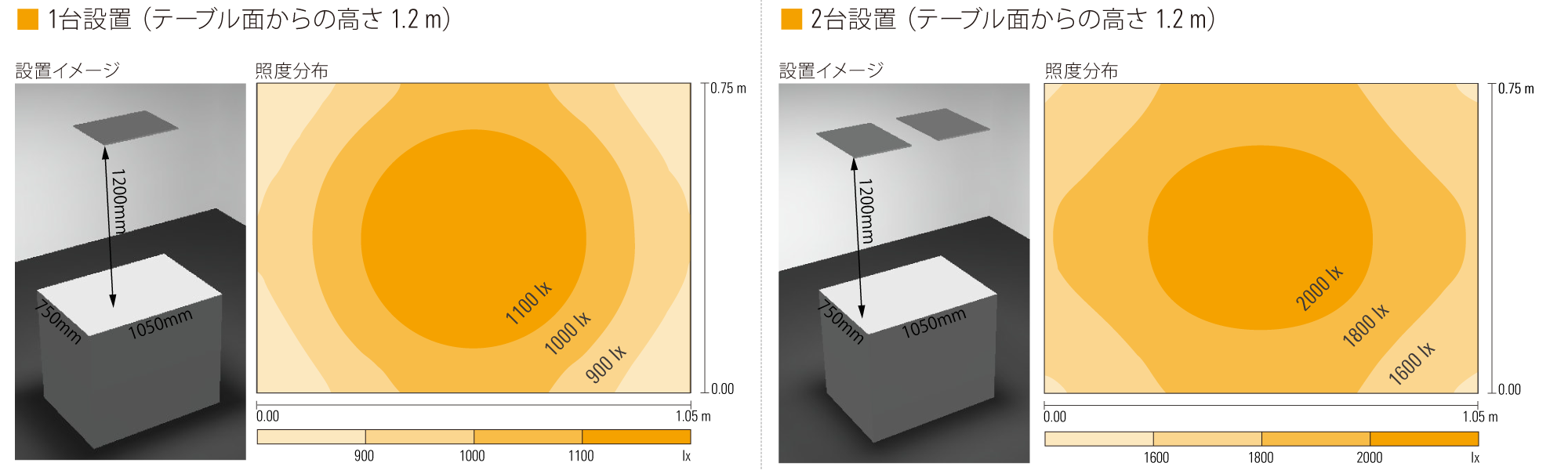 菊判サイズの面をtAAApで照射した場合、均一度高く照らすことができます