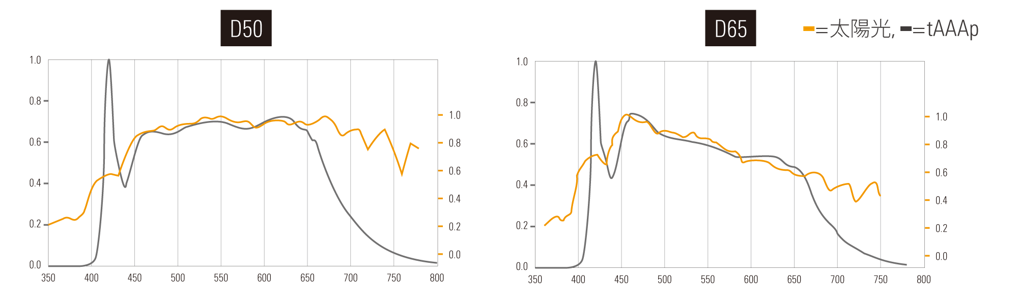 太陽光に近い波形を持つtAAApの光は、検査品本来の色合いで検査が可能です。